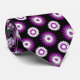 Neck-tie with a seamless modern geometric flower pattern in the colours of the asexuality pride flag; a black, grey, white, and purple ace pride design on a black background