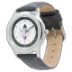 Watch with fleur-de-lis (fleur-de-lys or lily flower) symbol with rainbow stripes of black, grey, white and purple from asexuality flag; ace pride design