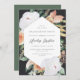 Elegant floral graduation party invitation features an elongated hexagonal frame of watercolor flowers and foliage in boho desert inspired shades of peach, white, ivory, and sage green. Personalize with your grad party details in modern lettering.