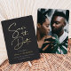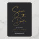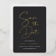 Invite guests to mark their calendars for your wedding with these modern and minimal save the date cards. Simple design features "save the date" in gold foil handwritten script on a soft ash black background, with your names, wedding date, location, and website beneath. Add a favourite portrait-orientated engagement photo to the back.