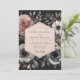 Evoke a sense of moody romance with this dramatic botanical design. A stunning composition of dusty ash rose blossoms and white anemones emerges from a dark, charcoal background. Shadowy foliage and delicate buds create a painterly, ethereal atmosphere for your special occasion.