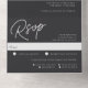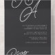 A beautiful typography based monogram wedding invitation featuring your initials in oversized script lettering at the top, in tone on tone shades for a watermark effect. Personalise with your wedding details in classic serif lettering aligned at the lower right. Our Ash colorway makes a classic statement with crisp white lettering on a soft black background. Attached RSVP card and folding style makes this all-in-one invitation an appealing choice.