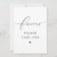 This wedding or event favour sign sign features an elegant calligraphy script font and modern minimalist design. Easily change the colours and edit *most* wording to meet the needs of your occasion. This sign is perfect for your contemporary, elegant or romantic wedding or other celebration.