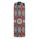 Argyle goes 8-bit with this classic bright red, pewter grey, and mid grey colour scheme with a light silver contrast stitch bringing to mind the final glowing embers among the remnants of a campfire. Customise the monogram on this tumbler with your initial to create a unique container for your beverages.