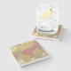 The coasters are gorgeous, a quality feel and heavy weight. They look like a precious archeological find. A rustic stone juxtaposed with a modern floral black and white print. I like the way the print goes slightly imperfect on the cut stone edges giving them a kind-of natural beauty.