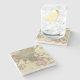 The coasters are gorgeous, a quality feel and heavy weight. They look like a precious archeological find. A rustic stone juxtaposed with a modern floral black and white print. I like the way the print goes slightly imperfect on the cut stone edges giving them a kind-of natural beauty.
