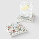 The coasters are gorgeous, a quality feel and heavy weight. They look like a precious archeological find. A rustic stone juxtaposed with a modern floral black and white print. I like the way the print goes slightly imperfect on the cut stone edges giving them a kind-of natural beauty.