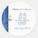 An asian blue double happiness wedding sticker which can be fully customisable. Matching wedding invitations and save the date cards are available in this gallery.