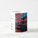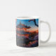 Coffee mug of an Asian castle surrounded by a garden during a tranquil sunset. Only peace and quiet reign in this place where the trees and plants, and the rocks on the pond create a scenery of beauty to heal the soul. This is a castle of meditative wholeness, and the uniqueness of spirit to be found within can only be achieved when all prejudiced preconceptions are left behind and one enters with a clear mind of future opportunity. Only then can there be a real sunset to your negative attitudes, and the sought after dawn of your developed self of goodness and light can become a reality. This image was created with Leonardo.ai and altered but a little by me.