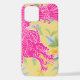 Fierce oriental dragon in Hot Pink on Pastel floral background
