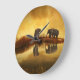 Asian Elephants in Thailand under a glowing sunset Large Clock
