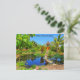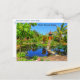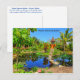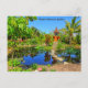 The image on this colourful Postcard features the Asian Garden within the Naples Botanical Gardens. It has a stepping stone path through a water garden leading to a Balinese shrine. The Asian Garden is one of seven distinct natural habitats and ecosystems within the 170-acre cultivated gardens and preservation land that feature over 1,000 species. There is a special emphasis on the ecosystems of the 26th parallel north. The Botanical Gardens are conveniently located only 3 miles from downtown Naples, Florida, and are a popular Wedding destination and venue for private events. The vibrant colours on this Postcard consist mainly of sky blue, tropical green, azure blue, and a splash of orange. The text on the front reads, "Naples Botanical Garden," and the top back of the postcard has a brief description of the image. Both, however, may be edited or deleted for personalisation. Photography by Glenda Motsavage, a Florida-based author and travel writer.