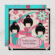 Pretty in pink and blue Asian Girls birthday invitations featuring several Asian girls in kimonos, origami birds and fish, cherry blossoms, and areas you can easily add your birthday party specifics to customise!