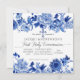 "Asian Influence Blue White Floral First Holy Communion Invitation." Features a hand painted acrylic watercolor design with a delicately painted cross, chinoiserie flowers and leaf border top and bottom that slightly overlays the white, inner edge to edge rectangle (you can add a background colour that will show through the top and bottom should you wish). Artwork was created by artist, Audrey Jeanne Roberts. Copyright. Hand painted watercolor Blue Asian Influence Floral Chinoiserie design has a complete collection available here (copy and paste link into browser): https://bit.ly/2DS0gN6
