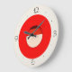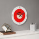This striking clock has an Asian influence showcased by a cream edge and red circle centre. Simplistic by design other features include black Numerals and hands.