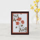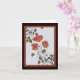 The image on this lovely Asian-inspired note card starts with my original digitally created pastel drawing of three red poppies in the centre of a piece of crumpled pale blue-grey paper. The paper is covered in lightly scribbled text. At two corners of the paper are monochromatic rose branches in brownish green that slightly overlap the poppies. Around the image is a border in the same red as the poppies then another wider border in dark brown. This beautiful, fully customisable card is blank inside for you to fill with your own thoughts. From my original design with elements from http://www.outlawbydesign.com.
