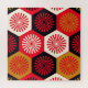 Asian-style hexagonal grid in vibrant shades. Ancient symbols tell tales.