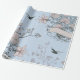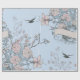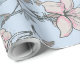 Asian Style Pastel Pink Lilies and Roses on Blue Wrapping Paper