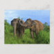 Animal card showing a couple of asiatic elephants. The Asian or Asiatic elephant (Elephas maximus) is the only living species of the genus Elephas and is distributed in Southeast Asia from India in the west to Borneo in the east. Three subspecies are recognised—Elephas maximus maximus from Sri Lanka, the Indian elephant or E. m. indicus from mainland Asia, and E. m. sumatranus from the island of Sumatra. Asian elephants are the largest living land animals in Asia.