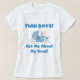 The proud new mum and dad of baby boy twins will love this cute design featuring two boy bunnies and blue text that reads "Twin Boys! Ask Me About My Sons!". Twin Boys T-shirts, cards, buttons, magnets, bags, mousepads, and more!
