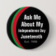 Red, black, and green striped ask me about my Independence Day Juneteenth button. Start a conversation about one of the newest nationally recognised federal holidays as of June 2021. Design by Ms_Jade. © 2021 Ms_Jade
