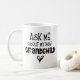 Ask Me About My New Grandchild Initial Black Text Coffee Mug