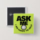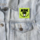 Ask me I am happy to help, slogan bold text and Smiling customer service or helper badge. Let your customers or the public know you are available to help with this bright simple text ask me design. Other colour options are available. Designed by www.mylittleeden.com