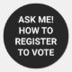 Ask me how to register to vote white and black classic round sticker