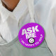 Ask me I am happy to help, slogan bold text and smillie customer service or helper button badge. Let your customers or the public know you are available to help with this purple and white badge. Background colour can be changed if required. Designed by www.mylittleeden.com