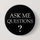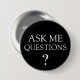 Bulk editable business promotional Ask Me pin back button pins in a bold yet simple design that says Ask Me Questions designed to be used at your next trade show, convention, or special events as a way to prompt customers or prospective clients to ask questions. These have been used at marketing trade shows promoting products, services, or charitable events created in classic black and white.