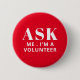 Ask Me Red Volunteer Button