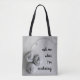 Neutral tote bag for crocheter with balls of yarn and text, "Ask me what I'm crocheting." How about a new bag to hold balls of wool and crochet needles for a friend or family member who crochets?