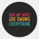 Ask My Wife She Knows Everything Groom New Bride H Classic Round Sticker