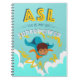 This vibrant and inspirational graphic showcases a young superhero, depicted flying through the sky, exuding joy and confidence. Emblazoned with the powerful message "ASL is my SUPERPOWER," this design celebrates American Sign Language as a unique and empowering skill. The backdrop features a bright, light blue sky with dynamic yellow and white bursts, emphasizing the superhero theme. This illustration serves as an uplifting representation of the abilities and pride within the deaf and hard of hearing community, encouraging viewers to recognise ASL as a formidable tool and strength.