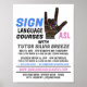ASL, Love Gesture, Sign Language Course Advertising Poster By The Business Card Store.