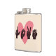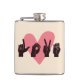 The flask itself is fine. It’s a cheap flask, obviously bought in bulk, however am prepared to overlook that. Given that it is a personalized item, I would have liked to have seen gift boxing instead of the generic packaging. Terrible printing, and/or quality. It’s a cheap, tacky vinyl. It is not cut straight and is also applied in a way that it is overhanging the bottom, causing the glue to catch on items and it will eventually roll and tear, damaging the wrap.