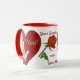 What do you get when you combine an original digital painting of a big plush looking red heart, a banner spelling out I Love you, a hand forming the ASL (American Sign Language) position that silently speaks, "I Love You", a single red rose, and a personalised inscription on a red-trimmed white ceramic mug? A VERY happy Sweetie and a very Happy Valentine's Day!