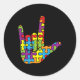 ASL Love Sign Language - Autistic Puzzle Autism Aw Classic Round Sticker