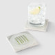 The coasters are gorgeous, a quality feel and heavy weight. They look like a precious archeological find. A rustic stone juxtaposed with a modern floral black and white print. I like the way the print goes slightly imperfect on the cut stone edges giving them a kind-of natural beauty.