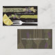 Rough and colourful green and purple asparagus with white fork and lemon wedge, awesome business cards for a personal or private chef, caterer or catering, cooking classes or other food, cooking, or culinary business.