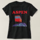 Aspen, red cable car over the mountain. Simple black t-shirt for women with travel design.