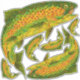 The fourth in my series of rainbow trout digital collages created from my paintings of aspen leaves.
