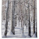This photograph shows white bark Quaking Aspen tree trunks with long shadows in a winter snow.
