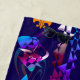 Abstract design with colorful and vibrant geometric shapes of archers and knights at the siege of a medieval fortress castle. Design inspired by medieval castles with a happy look. Perfect for lovers of gothic and medieval aesthetics. Customizable color background.