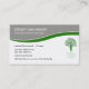 Assisted living business cards with modern design that includes green and grey design element, white background colour you can change, and tree shape that represents growth and caring. Change the text layout or style to make this work for your business. Designed for any assisted living, senior care, or nursing home.