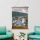 The polyester fabric displayed many wrinkles and several sharp creases throughout. At the bottom of the tapestry, I noticed a bulge in the fabric because it was not pulled tight enough before being connected to the wooden boards. It took me over an hour to spay water on the tapestry before putting it on an ironing board where I used a warm iron over a polyester cloth to remove the wrinkles and creases in the material. I was able to get out the wrinkles and creases that made that tapestry look as beautiful as its picture.