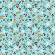 An illustrative surface design of assorted leaf silhouettes in teal, cream, brown and gold on a light teal background.