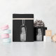 Assorted bottles sketched in chalk in seamless repeating pattern in white on black.