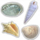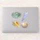 Custom-cut vinyl sticker with an image of an abalone shell, a Florida auger shell, a Van Hyning’s cockle shell and a conch shell. See the entire Under the Sea Sticker collection in the INVITES | Stickers & Labels section.