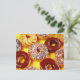 Assortment of fresh tasty doughnuts on yellow background postcard